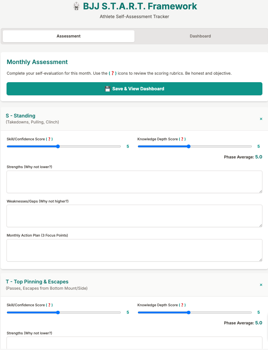 BJJ Athlete Self-Assessment Tracker: S.T.A.R.T. Framework